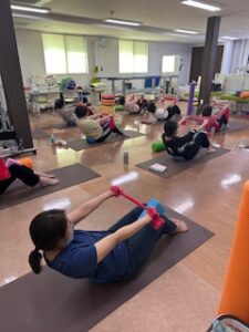 最後はチューブやストレッチポールを使ってお尻周りの運動をしっかり行いました!