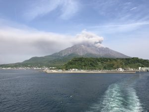 フェリーからも、煙をあげる桜島を見ることができます。