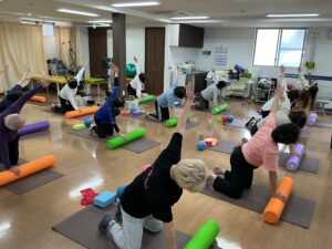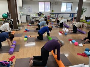 ストレッチポール上で骨盤や股関節、肩甲骨を動かしていきました。